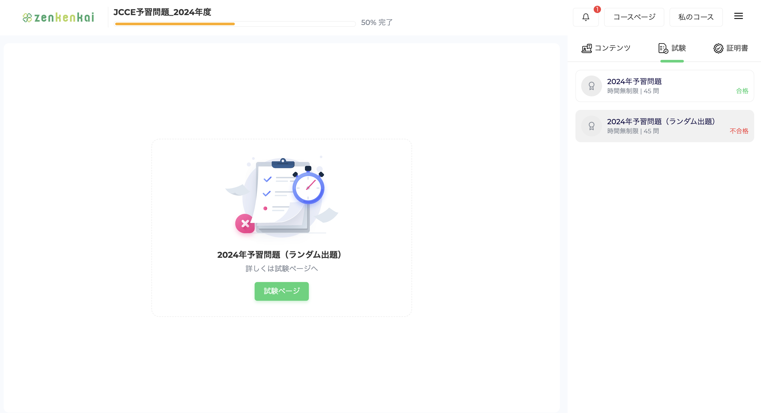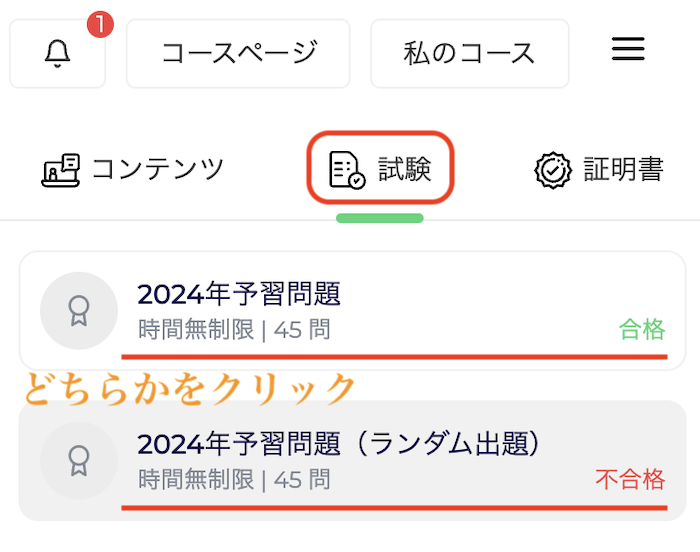| 何度でも試験を受け直せます。しっかり予習しましょう! |